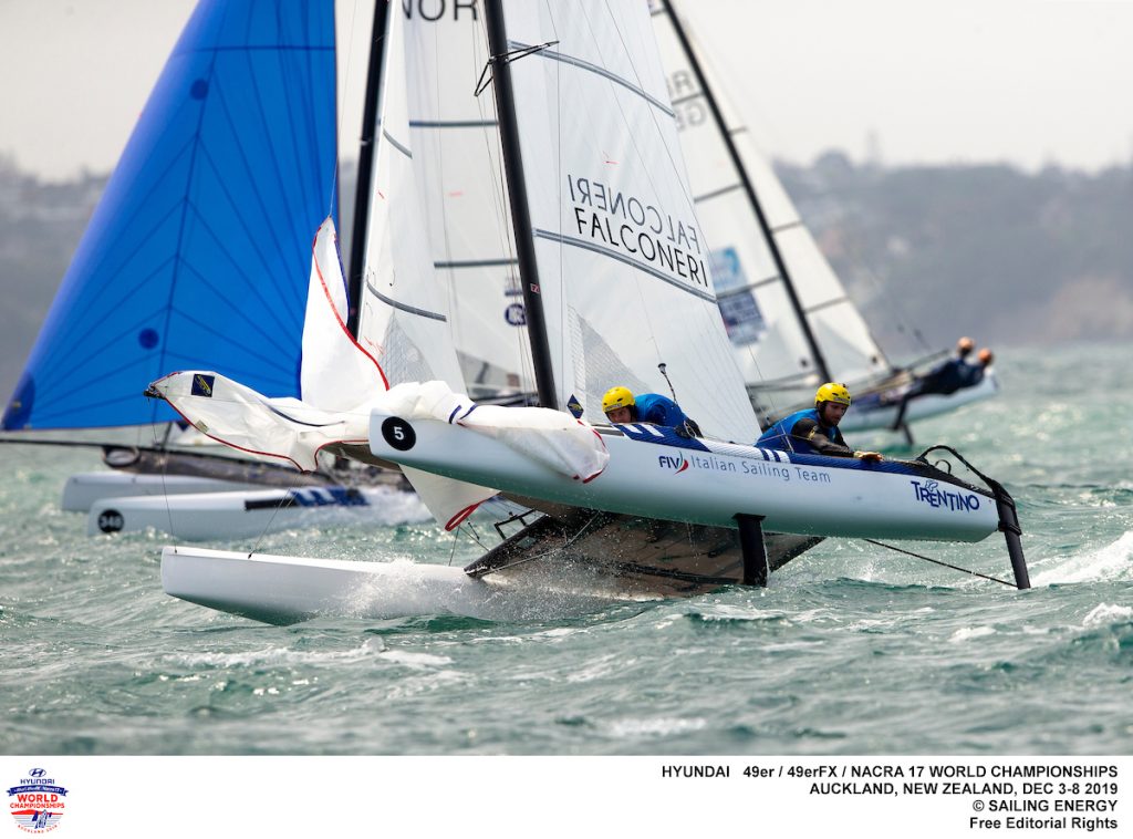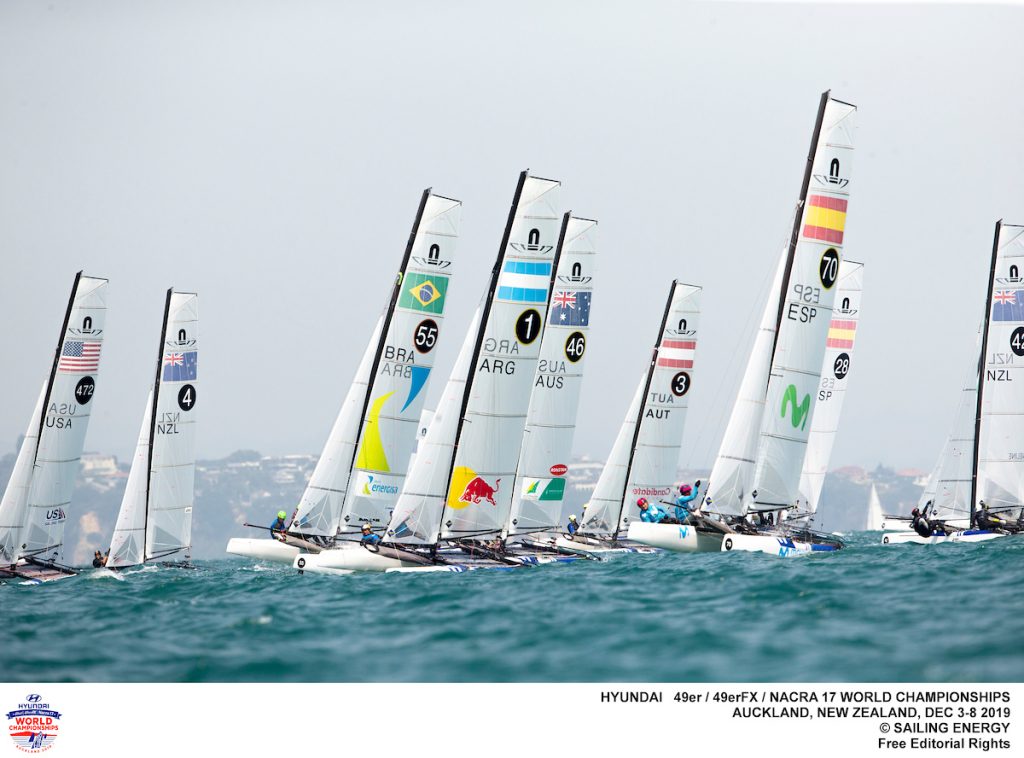 The fourth day of the 2019 Hyundai nacra17, nacra17FX and Nacra 17 World Championships saw the race for the title and Olympic qualification is beginning to take shape as the fleets split into their respective Gold fleets.