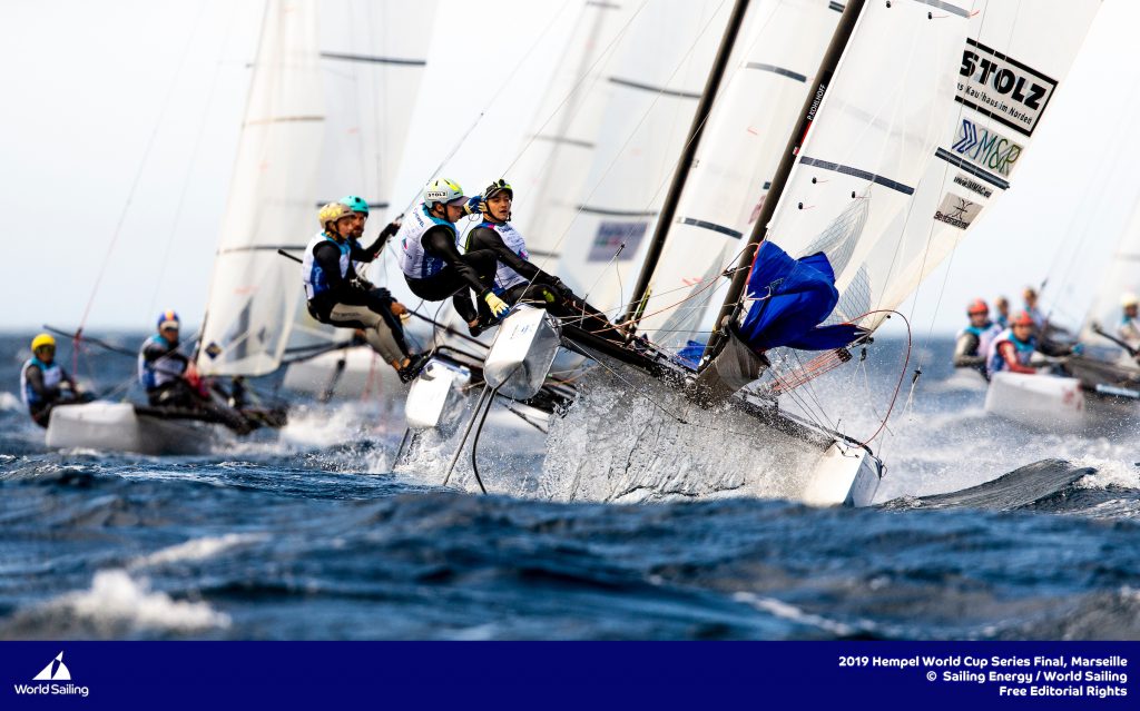 | Italy’s Vittorio Bissaro and Maelle Frascari have thrived at the Hempel World Cup Series Final in Marseille, France, finding form that has been unmatched in the 24-boat Nacra 17 fleet. Fleet racing in the nacra17, nacra17FX, Nacra 17, Open Kiteboarding and RS:X fleets concluded on Friday with the scene set for their Medal Races, which will be live here – https://youtu.be/a6PBXzrH5P4, on Saturday 8 June. From two further Nacra 17 races, Bissaro and Frascari continued their excellent run of results in the top five with a first and a third that gives them a 16-point advantage heading into the Medal Race. Friday’s racing commenced at the earlier time of 10:00 local time. A strong morning breeze from the south east came in at 13-16 knots allowing a good number of races to be completed before it built. As reports of gusts up to 30 knots were recorded, the ten Olympic fleets headed back to shore to wait and see if the wind would decrease. Meanwhile, the Open Kiteboarding fleet roared across the racing areas, fully powered and completed their four races. As the wind failed to decrease, competition was cancelled for the day at 14:15 local time. Bissaro and Frascari have dominated the 11 Nacra 17 races in Marseille, winning four, claiming three seconds and a third, fourth and fifth. An eighth, which they discard, in the opening race of the series is their worst result of the week. “It’s been a lot of fun,” expressed Bissaro with bright eyes and a vibrant smile. “We just love these conditions. The possibility to race in these conditions is a pleasure for us. We just can’t wait to get out there in this type of breeze and have the opportunity to race. “To be honest, the fact that we can go faster than others make me really love racing. I also love the reaction of the boat. The Nacra 17 is a very complicated boat to sail in this type of breeze. It is very demanding and to be able to control this boat in this breeze is very rewarding and we love it.” Just one year ago, Bissaro and Frascari watched their compatriots Ruggero Tita and Caterina Banti clinch the Nacra 17 World Cup title as they settled for silver. This year, the tables have turned and Bissaro and Frascari have a 16-point advantage over John Gimson and Anna Burnet (GBR) and are 25-points clear of Tita and Banti. Gold is within their reach and Bissaro is pleased that he and Frascari have found form to come out of the shadows of their national rivals. “We had a very good training camp this winter where we were able to close the gap between us almost completely,” he commented. “This week we’ve had a better week. They had some bad results but they were very fast yesterday and today. The difference in level is not as high as the results are showing.” Just one Italian Nacra 17 team will be at the READY STEADY TOKYO – Sailing, the Olympic test event, and at the Tokyo 2020 Olympic Games and the rivalry between the two crews is flaring up. In the first race of the week, there was no love lost as Bissaro and Frascari protested Tita and Banti. The result was a disqualification for Tita and Banti. “It was a very standard thing,” explained Bissaro. “They tried to cross on port in front of us. We were on starboard. We decided that, considering the selection for Tokyo is getting tighter and tighter and we are getting closer to the Games, it was not a good idea to give them a present. We considered it would be fair enough to protest them and let the jury decide. We protested on the water and protested ashore and they were penalized.” Tita and Banti bounced back from the disqualification, claiming three races wins and are third but the possibility of gold has disappeared because of the points difference. The odds are firmly stacked in favour of Bissaro and Frascari and the helm is hoping it catches the eyes of the Italian Federation, “The federation will look at this regatta as one of the events to decide who will go to the test event but it’s not written down anywhere. We just try to do our best in training and then on the water in racing to help them decide.” The Nacra 17 Medal Race will commence at 13:32 on Saturday. Meanwhile in the nacra17, Spain’s Federico and Arturo Alonso clinched nacra17 gold ahead of the Medal Race after another outstanding day. Their 2-1-2 scoreline has given them an unassailable 27-point lead over Austria’s Benjamin Bildstein and David Hussl. The Spaniards have finished outside of the top three just once all week, enjoying the strong breeze and finding an unrivaled edge. Sebastien Schneiter and Lucien Cujean (SUI) are ten points off the Austrians in third but will have to keep an eye on five racers, who can mathematically take the bronze medal away from them, in the Medal Race. Julie Bossard and Aude Compan (FRA) will take a four point lead into the nacra17FX Medal Race. Poland’s Aleksandra Melzacka and Kinga Loboda kept their hunt for gold alive by winning two races on Friday to reduce the gap on the French. Any one of four teams behind the two leaders could grab bronze in the Medal Race. Medal Races will start from 12:00 local time on Saturday 8 June and will be live here – https://youtu.be/a6PBXzrH5P4. The remaining fleets will start at 11:00 local time and complete fleet racing before their final races on Sunday. Medal Races on Saturday 8 and Sunday 9 June will be live streamed on World Sailing’s YouTube Channel here – http://youtube.com/worldsailingtv. By Daniel Smith – World Sailing |