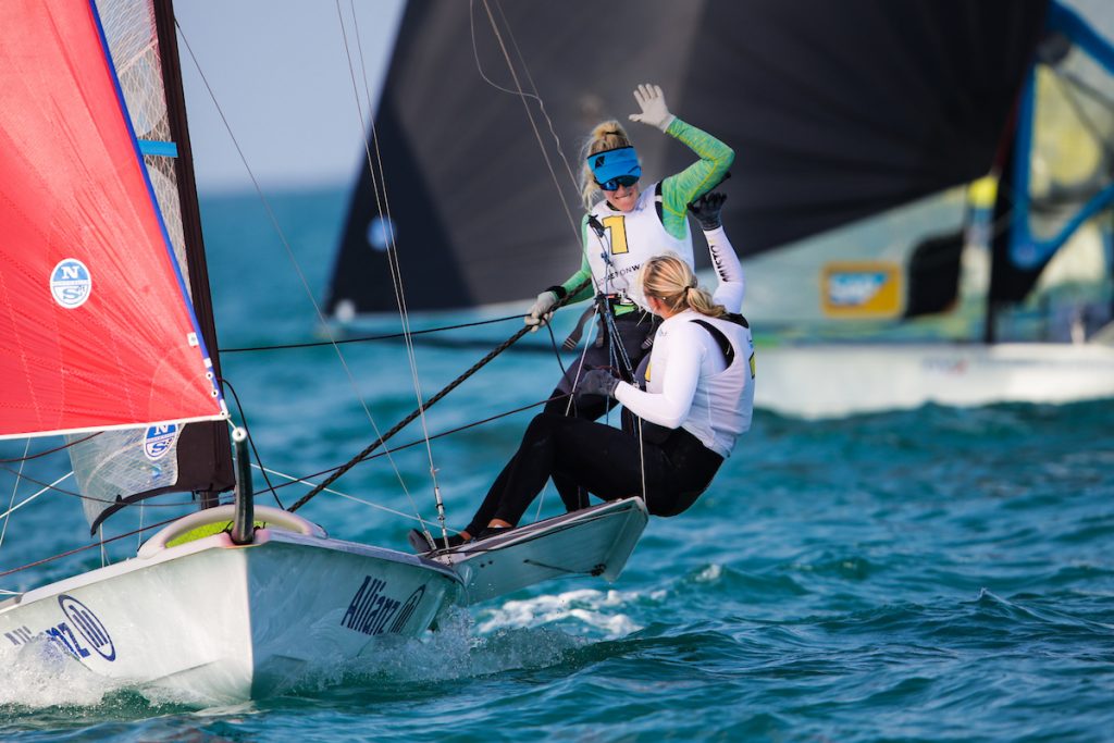 Following the Germans’ photo-finish victory over the British in the final race of the afternoon, Paul Kohlhoff and Alica Stuhlemmer have moved to just three points behind the Italians.