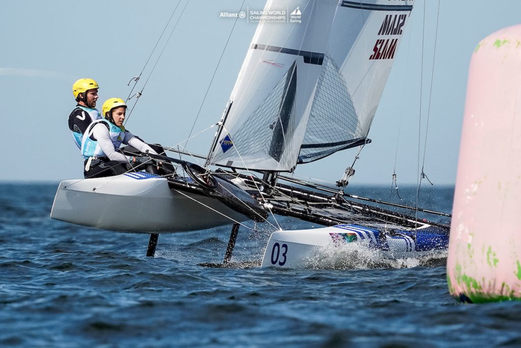 Only Emil Jarrud with Hannah Johnson (SWE) managed three races in the top 10, including a first and a second to vault up to third overall. This Swedish pair have been gradually moving up the standing all quadrennial but this is the first time they are in the podium standings so deep into an elite regatta.