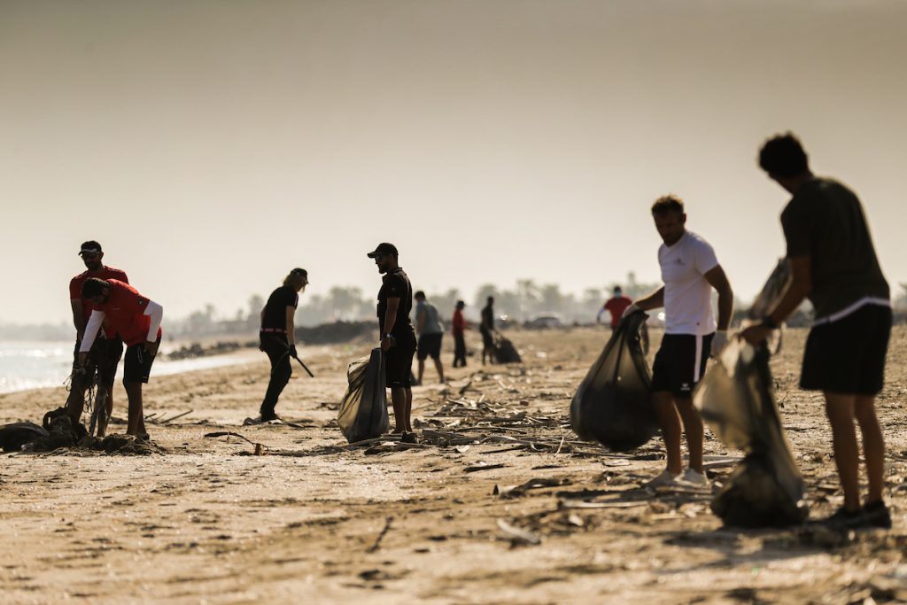 One common thread for vagabond sailors is that every beach in the world seems more full of plastic than the year before. The 50 sailors and Oman Sail staff heading out to do a beach clean this morning there was plenty to pick. It was a few minutes dedicated to the greater cause before a week being focussed inwardly.