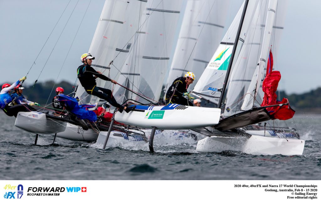 The Nacra 17 fleet of 34 will be whittled down to 10 teams for the medal race on Saturday February 15, 2020