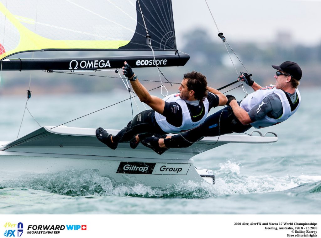 Reigning nacra17 world champions and Rio 2016 Gold medallists, Peter Burling and Blair Tuke (NZL), bagged enough low scores in the qualification round to lead at the midway point of the 2020 nacra17 World Championship in Geelong, Australia.