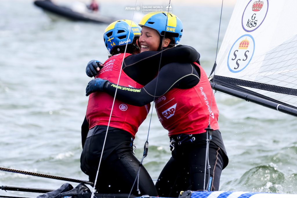 Meanwhile, Jarudd and Jonsson (SWE) who were sitting in third overnight had a horrible start, and were last to cross the line as they messed up a pre-start maneuver.