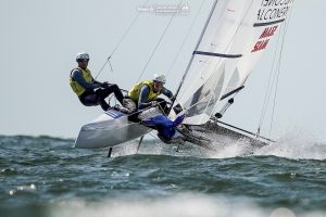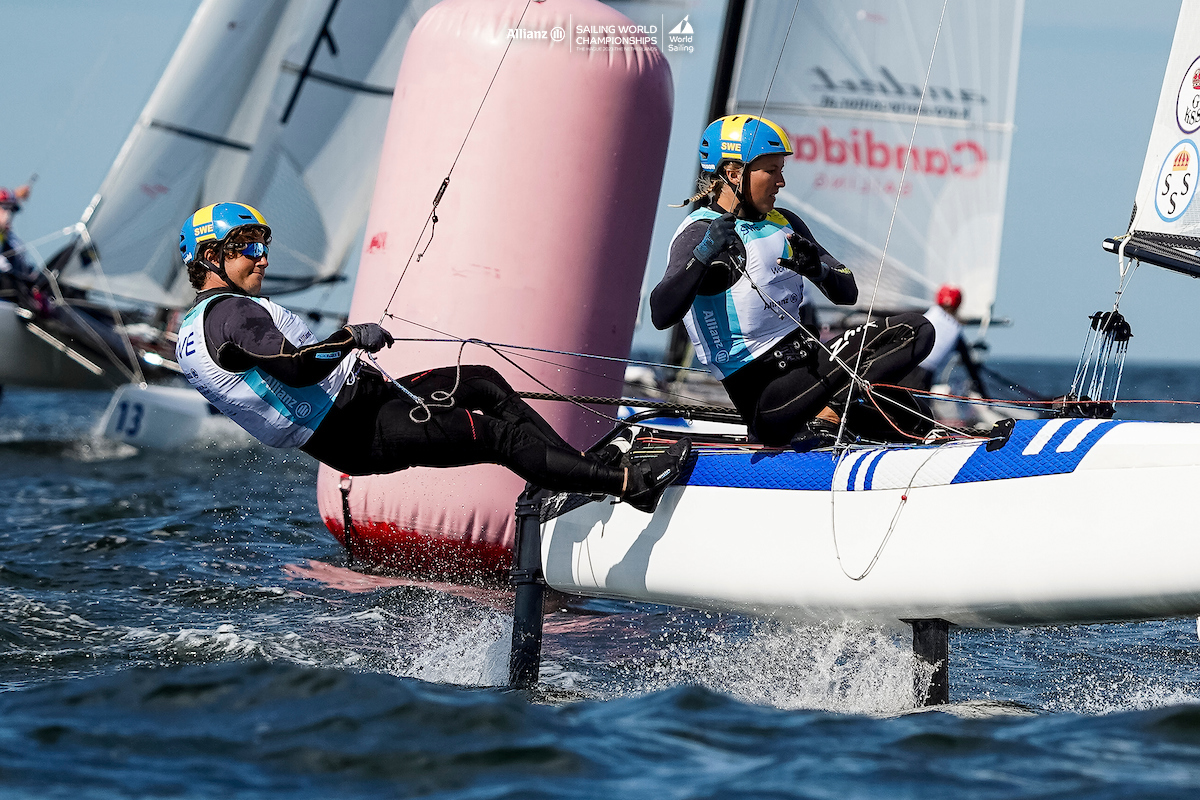 The first day of Gold fleet for the Nacra 17 brought all 25 top teams