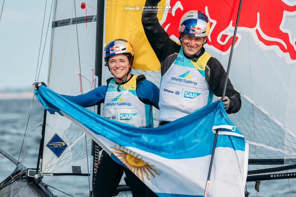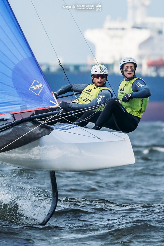 Ruggero Tita and Caterina Banti (ITA) had the best day on the water of everyone again today, with a 1, 1, 3. The defending gold medalists and defending World Champions have all but secured their second straight world title and fourth overall. They sit 16 points ahead of second place, leaving just a small opening by which they could be passed during the medal race, which runs August 17th.
