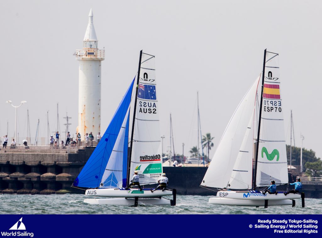 Another day of racing and another style of breeze for the Tokyo2020 Olympic Test event in Enoshima, Japan. In a much more stable and predictable sea breeze the Nacra17 leaderboard tightened up around the top five teams as we head into tomorrow’s double points medal race. Italian’s Ruggero Tita & Caterina Banti and Argentina’s Santiago […]