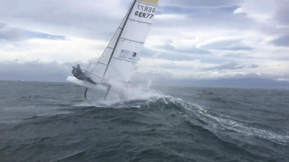 Gianluigi Ugolini & Maria Giubilei (ITA) just won the 2018 Junior World Championship for the Nacra 17! They won the only race today, ultimately winning 6 of the 7 races that were run for the Nacra 17 and were clearly the class of the field. Upwind the racing was typically quite close, but the Italians […]