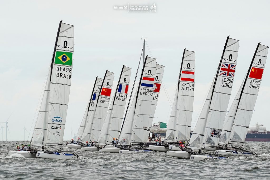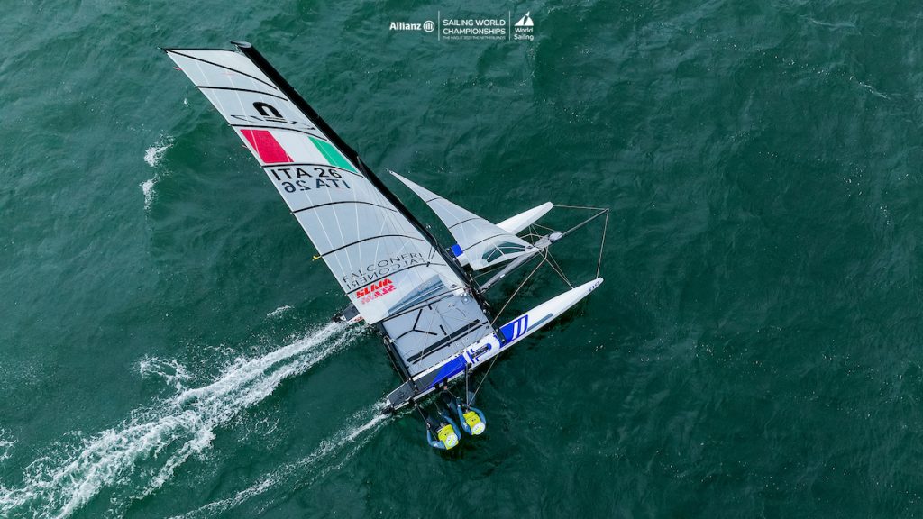 Max Verstappen, the Formula 1 driver making racing ‘boring’ wishes he was as inevitable in victory as Tita and Banti (ITA). The Italian Gold medalists ran another picket fence today with three straight victories in the nacra 17 racing. If they hold on to win the 2023 World Championship, that would make four World titles and a gold medal since 2017.