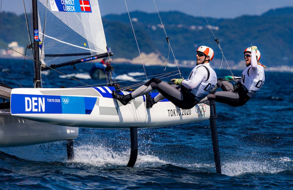 Cenholt and Lubeck (DEN) celebrate another race win at Tokyo 2020.