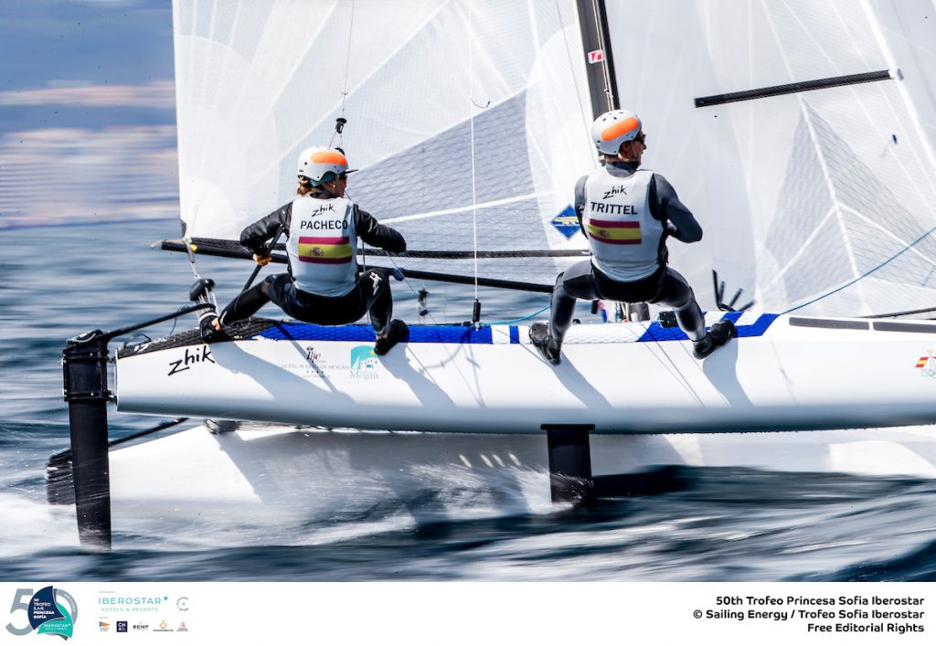 The newly formed Spanish duo of Tara Pacheco and Florian Trittle outclassed double Olympic nacra17 medalist Iker Martinez and his crew Olga Maslivets to put pressure on the Spanish selectors, while Bissaro & Frascari defeated their Italian training partners and current World Champions Tita & Banti.